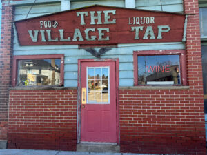 We settled on The Village Tap. It doesn’t look very auspicious does it? There was a newer fancier sports bar across the street and I’m sure it would’ve been fine but the Village Tap was calling my name. We walked in and 1) it was a little shabby and 2) I was the only woman in the bar except for the bartender. But still.