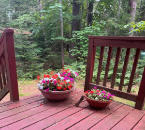 This little red squirrel and her buddy chase each other all over the yard and up onto the deck constantly. It can be quite the commotion. She seemed interested in the impatiens momentarily but ultimately didn’t bother them. The impatiens are absolutely amazing this year but that’s beside the point. Last year Heinrich (snowshoe hare) or maybe some deer ate them.