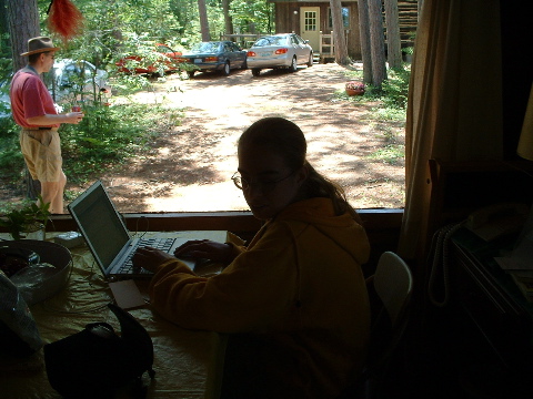 while Val checks her email